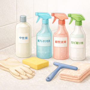 中性洗剤だけでは落ちない石けんカスや水アカが蓄積していることが多いため、定期的に酸性洗剤を使った掃除を取り入れてみてください。