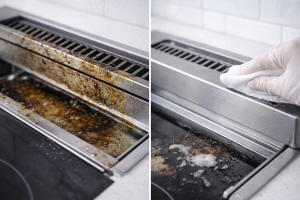 一方で、拭き取っているつもりでも油や調味料が少しずつ残り、加熱を繰り返すことで、落ちにくい汚れへ変わっていくことがあります。