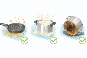調理直後が拭き取りやすくても、放置すると焦げつきや落ちにくい汚れの原因になります。